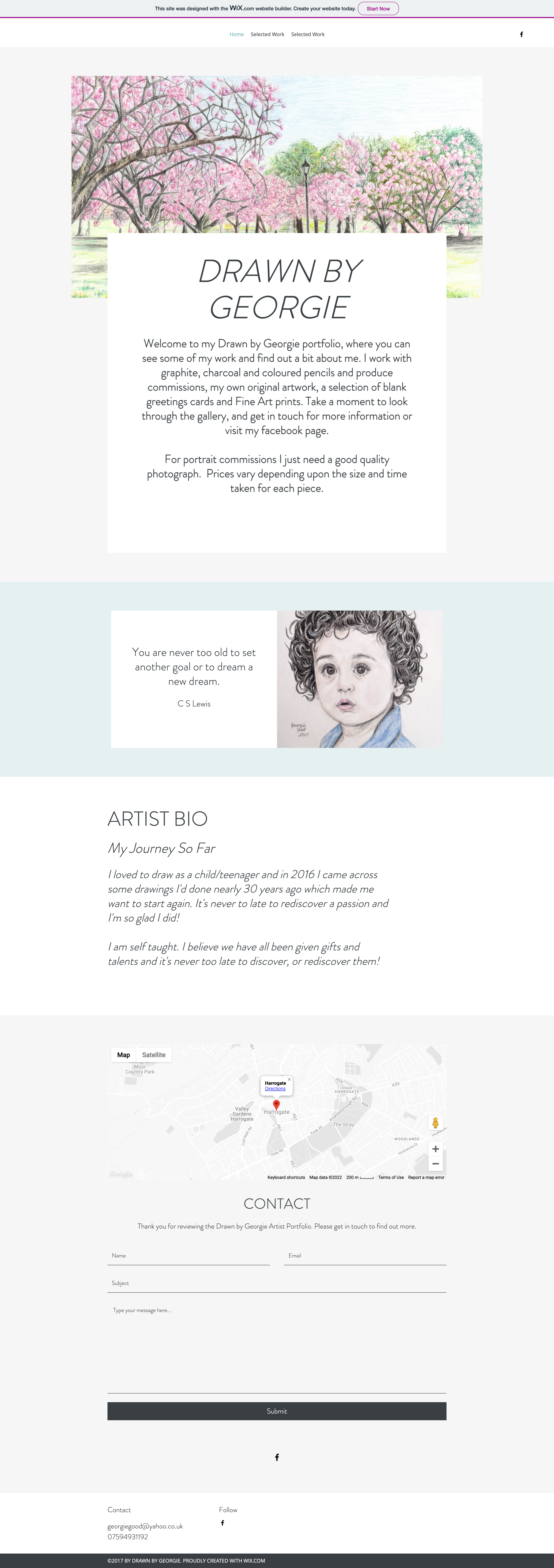 The last step involved designing and launching Georgie’s new website on Squarespace 7.1 with e-commerce capability so that she can sell her beautiful artwork, offer 1:1 drawing lessons and connect with clients who would like to commission her for a portrait etc.