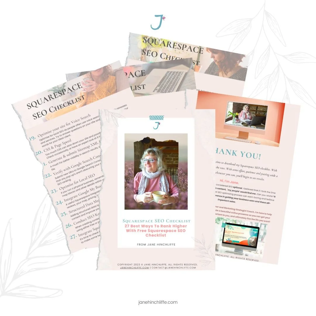 Subscribe here to receive Free downloads: Ideal Customer editable Canva Template, and an SEO Checklist for Squarespace (or other platforms).