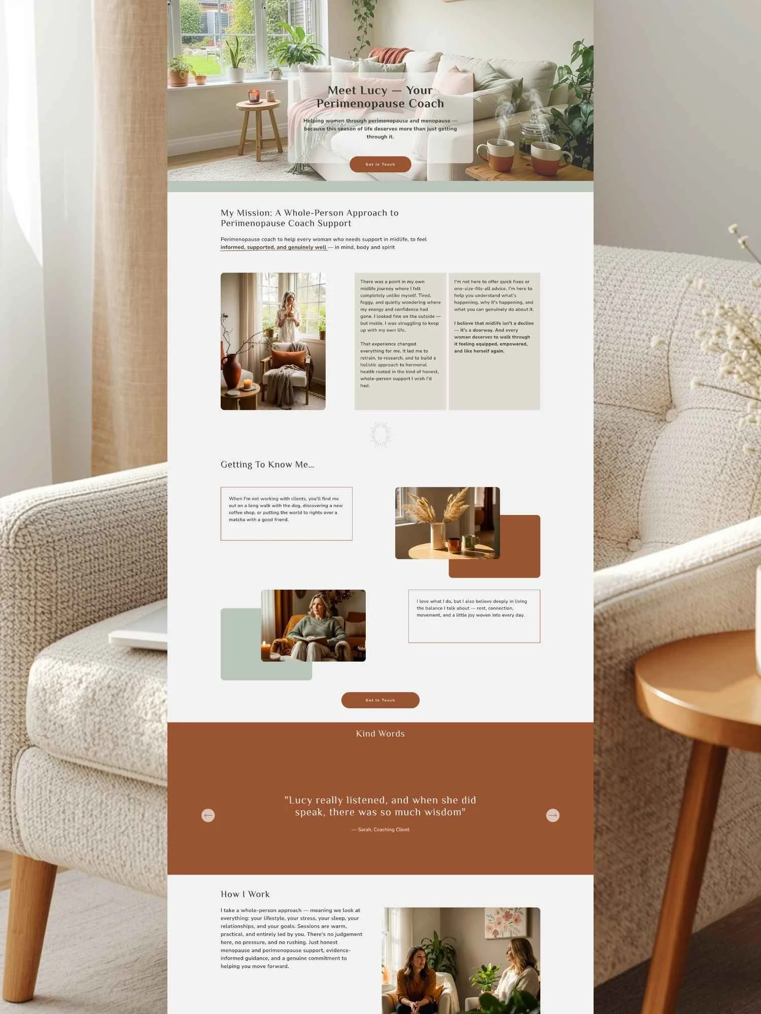WiseWomen was designed specifically for coaches, yoga teachers, therapists, and wellness practitioners. Every page is ready to customise with your colours, your words, and your work. No coding. No starting from scratch. No staring at a blank screen, wondering where to begin.